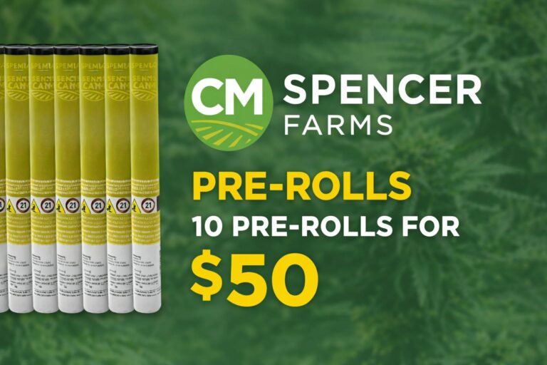 CM SPENCER FARMS PREROLLS 10 FOR $50 GET 10 PRE-ROLLS MIX AND MATCH ANY CM SPENCER PRE-ROLLS FOR $50 (regularly $70) – Shop Now ⭢